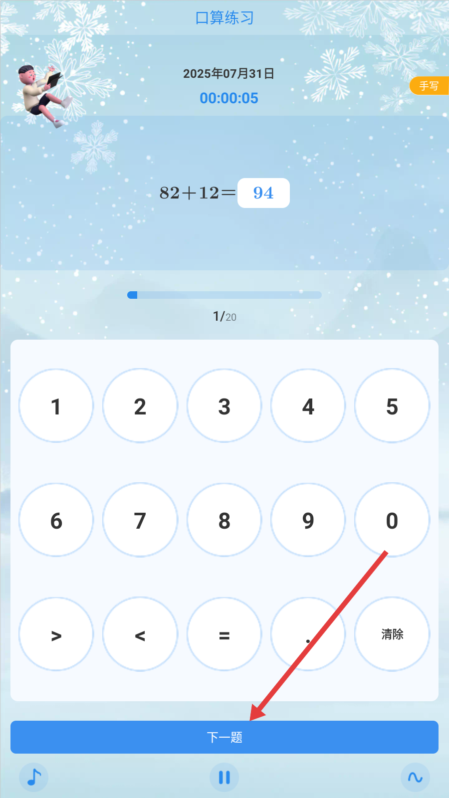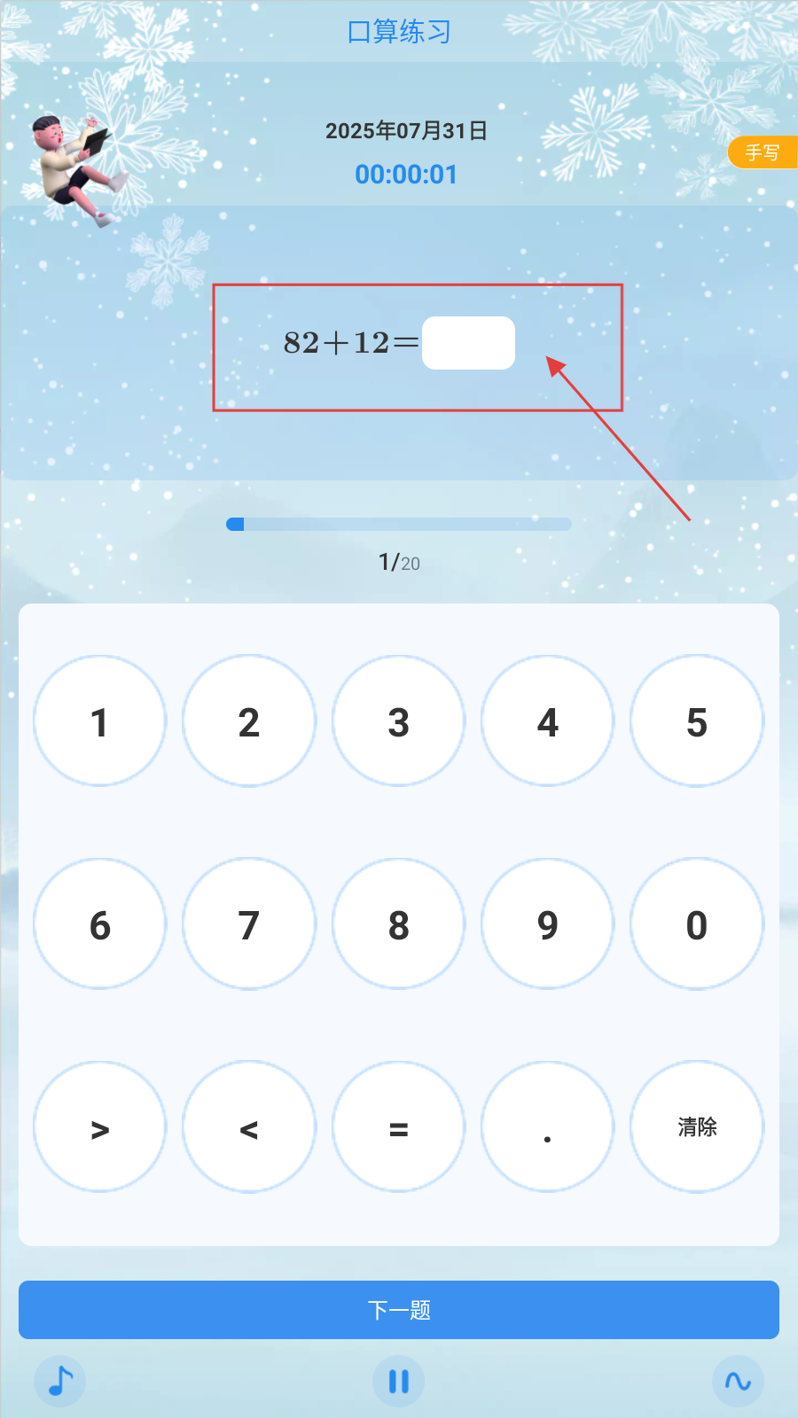 3、做完一题,点【下一题】,继续完成20题口算练习。