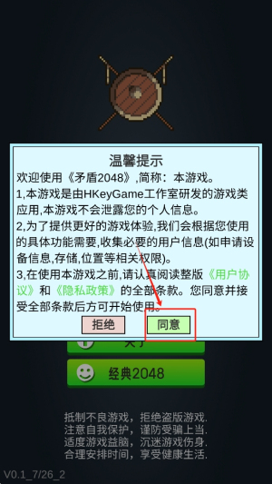 1、同意游戏条款:在温馨提示界面,阅读用户协议和隐私政策后,点击“同意”按钮。