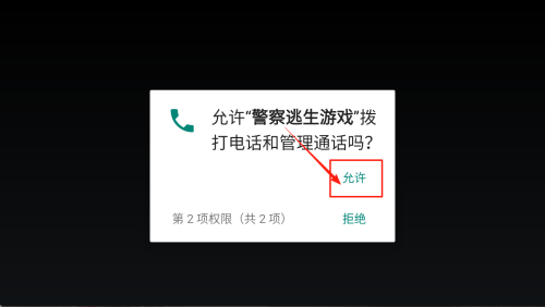 1、授权权限:在“允许警察逃生游戏拨打电话和管理通话吗?”弹窗点击“允许”,完成权限授予。