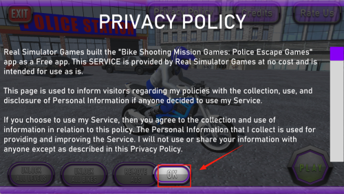 2、阅读政策:在隐私政策页面快速浏览后点击“EXIT”返回主菜单。
