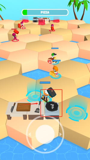 3、收集披萨:控制角色移动到披萨上方,自动收集披萨。