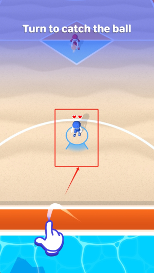 2、学习接球操作:根据屏幕提示,滑动手指使角色转向以接住排球。