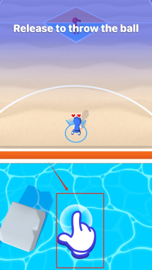3、学习发球操作:在接到球后,滑动手指使角色发球。