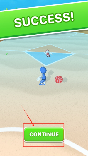 4、完成游戏回合:成功发球后,点击“CONTINUE”继续游戏。