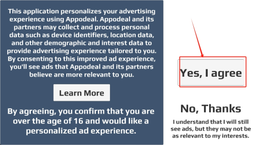 1、同意广告个性化:点击“Yes, I agree”同意广告个性化设置,以获得更相关的广告体验。