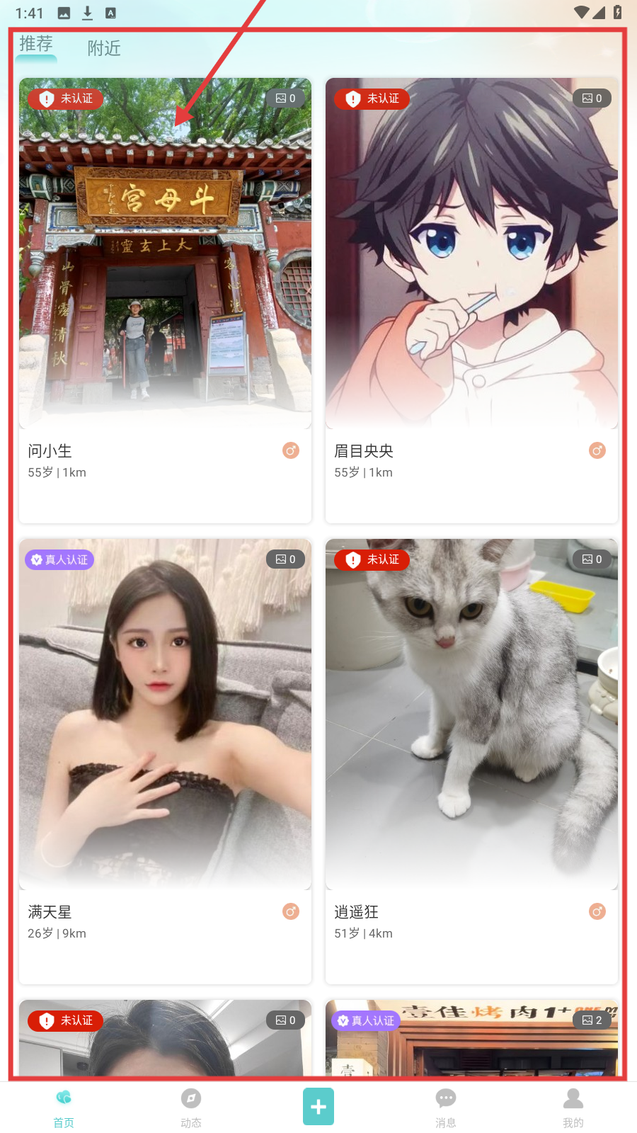 1、在首页浏览推荐用户,选感兴趣的用户,点击进入主页。