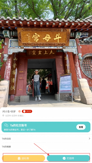 2、进入用户主页,可点【打招呼】,发起互动交流。