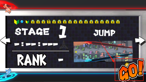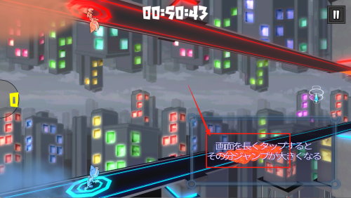 3、屏幕显示“000000000000000000 STACE JUMP RANK”时,点击“JUMP”按钮让角色跃过障碍。