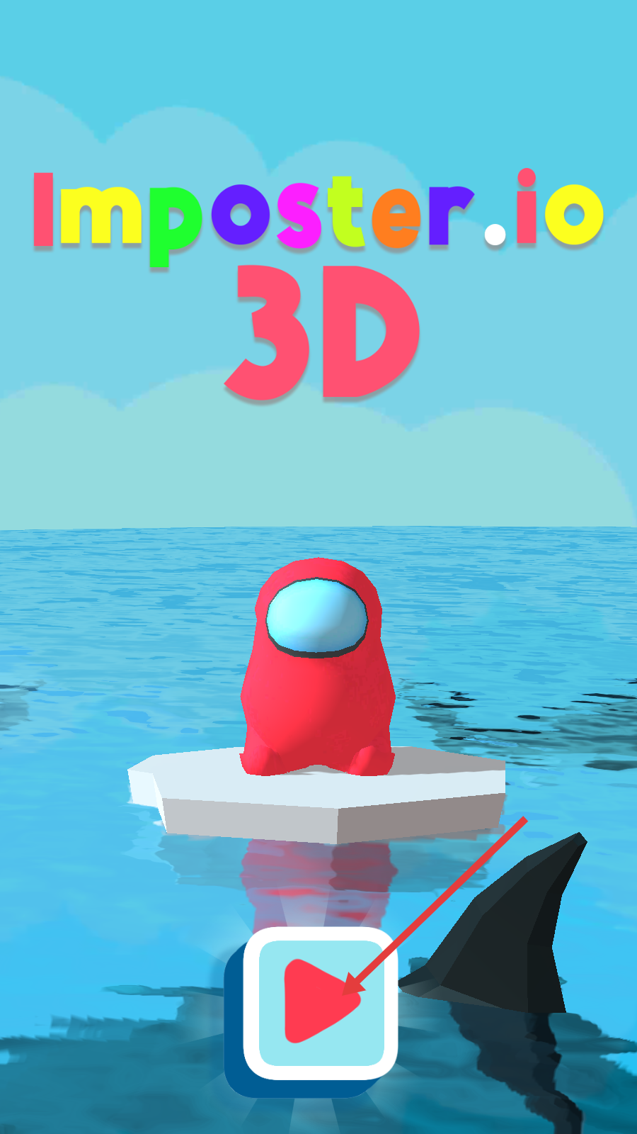 1、点击界面红色播放按钮,进入【Imposter.io-3D】游戏,操控角色在水上平台开启冒险并躲避鲨鱼。