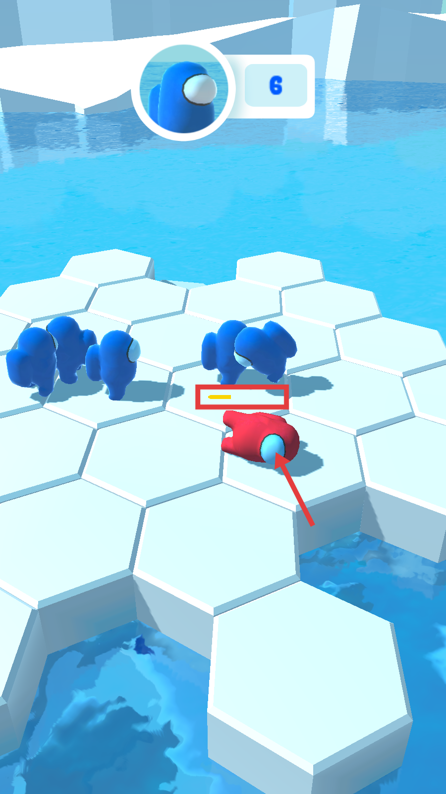 3、上方数字变为【6】时,留意红色角色状态,若其倒地需快速调整策略,避免自身角色掉落平台。