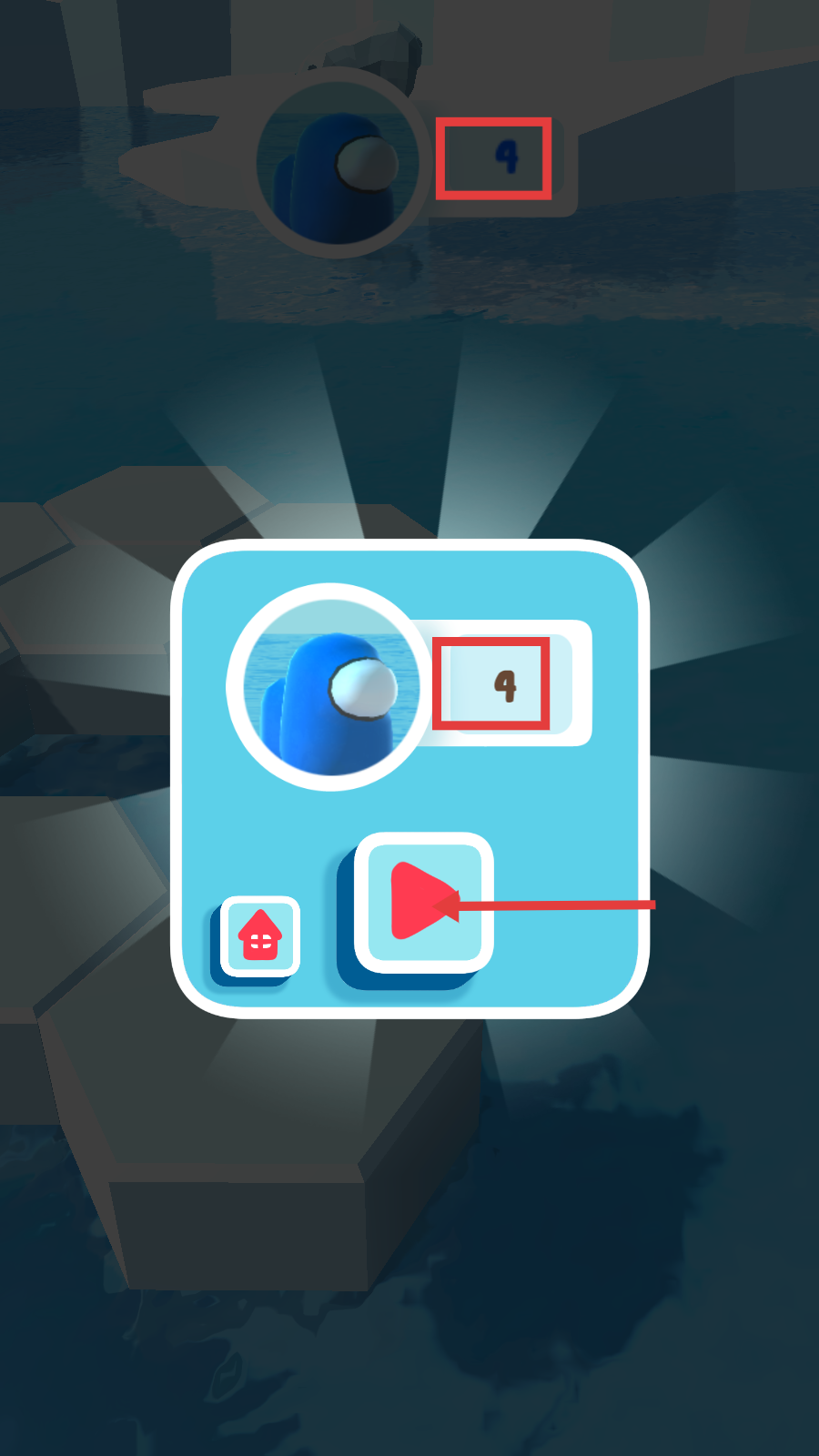 4、阶段结束后出现结算界面,数字【4】显示剩余对手,点击红色播放按钮可继续下轮挑战。