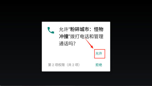 1、看到权限弹窗“允许强尼的帮派冲突拨打电话和管理通话吗?”时,点击“充许”继续。