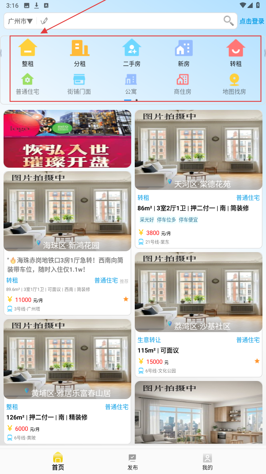 1、打开APP,按需选【整租】【分租】等功能,进入房源列表。