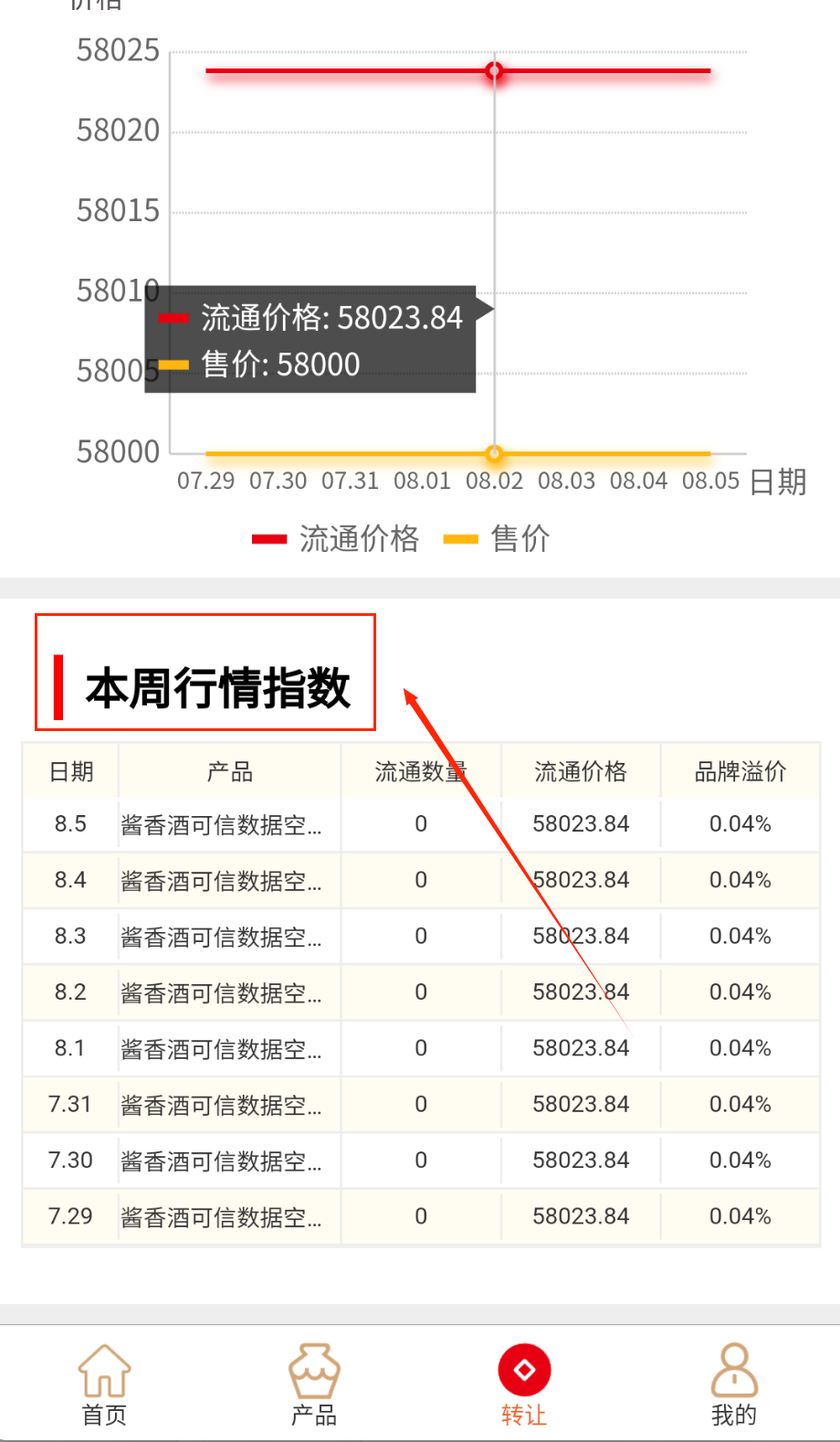 2、行情页展示实时白酒价格指数,支持按品牌/香型/年份多维度筛选,历史数据可回溯3年,走势图支持缩放查看细节啦。