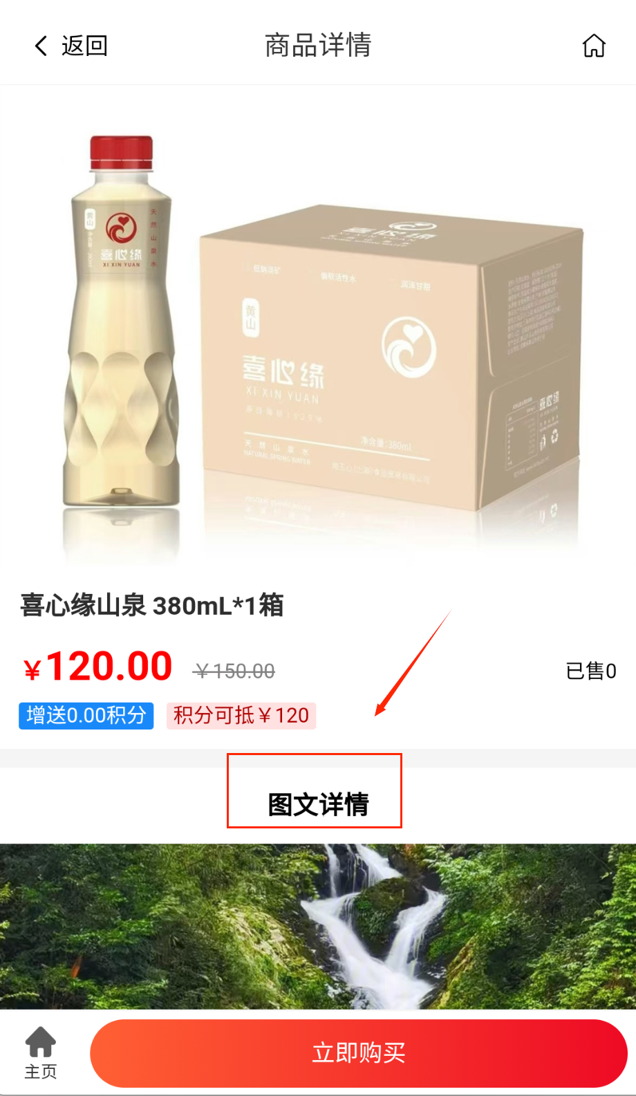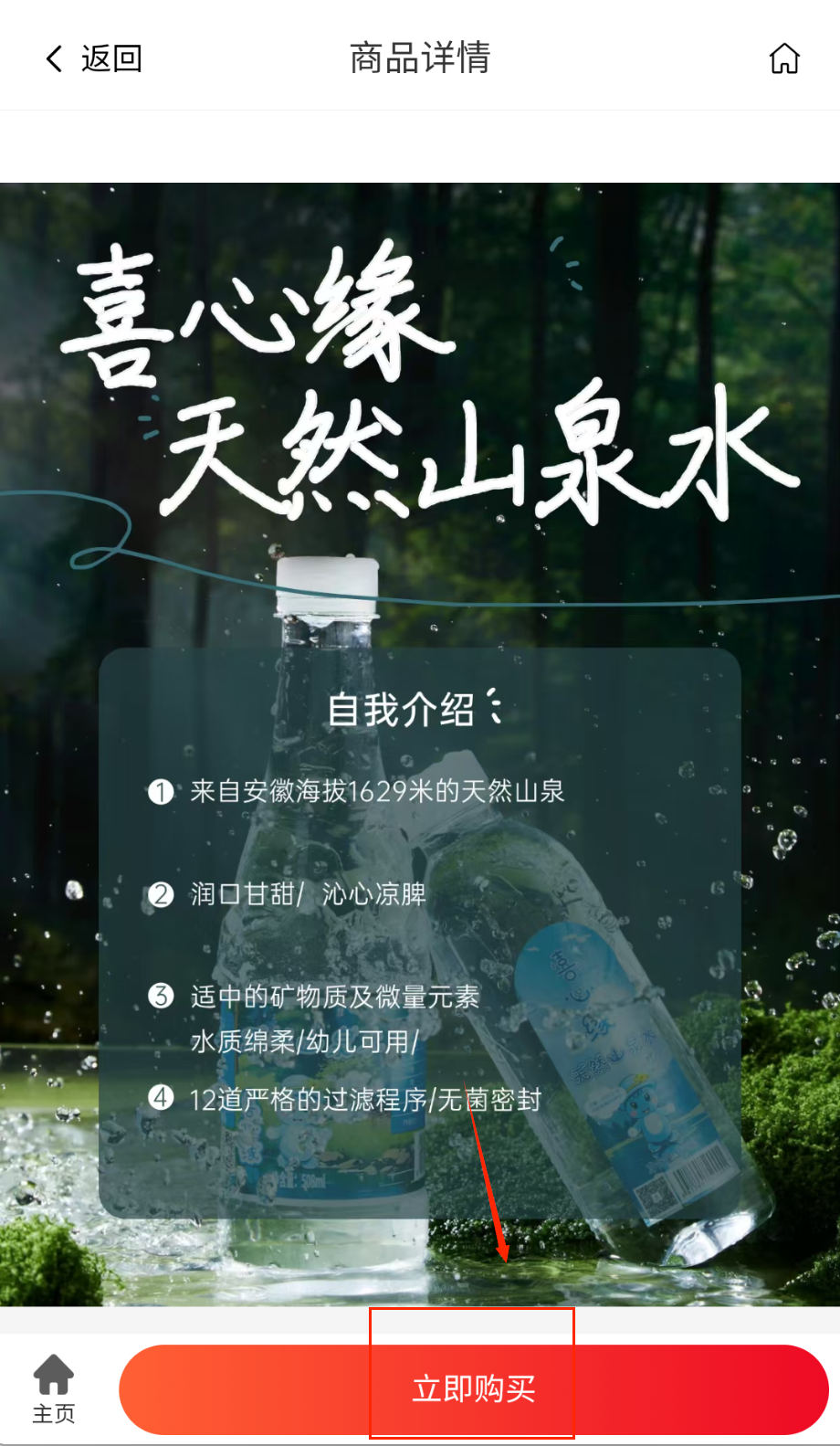 2、商品详情页查看水质检测报告与配送范围,选择配送频率与时间,电子水卡充值享受会员折扣。