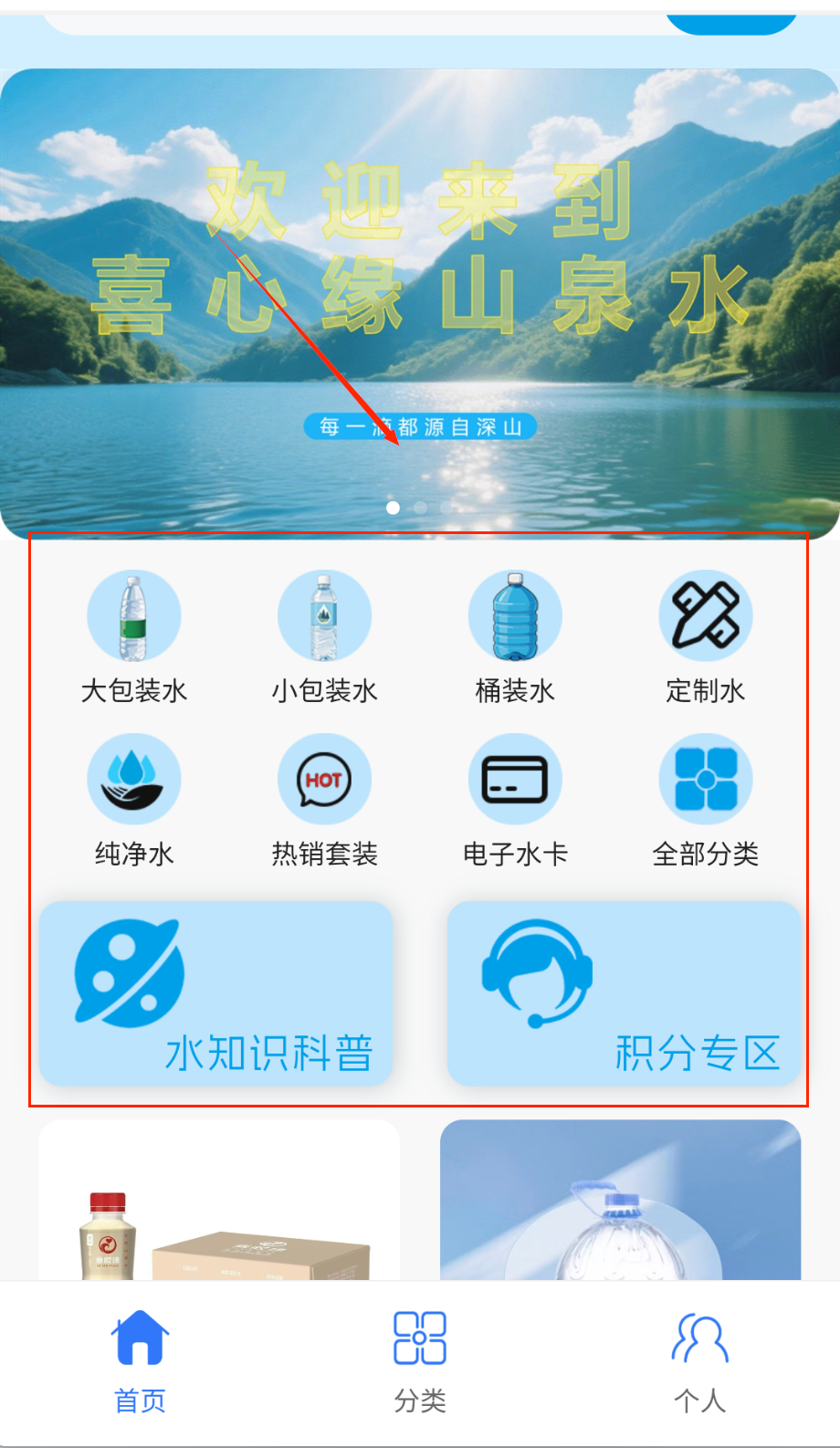 1、注册账号后进入商品分类页面,按包装规格或水源类型筛选目标产品,新品专区展示当季限定商品。