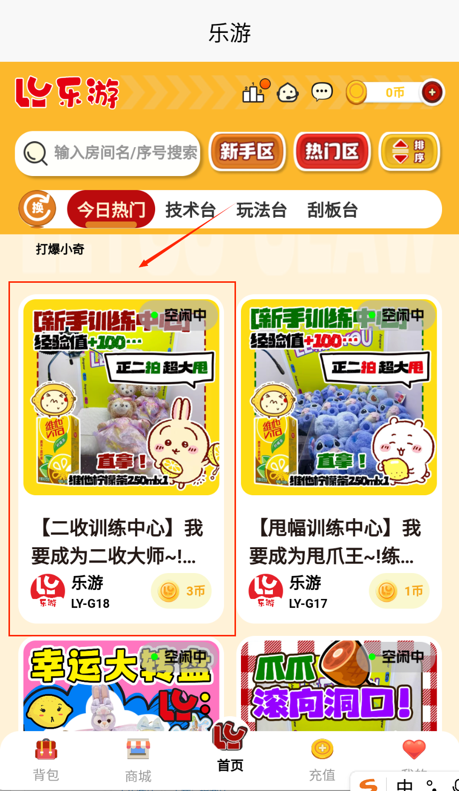 1、注册账号后进入游戏大厅,浏览不同机台的玩偶展示,选择心仪目标进入操控界面。