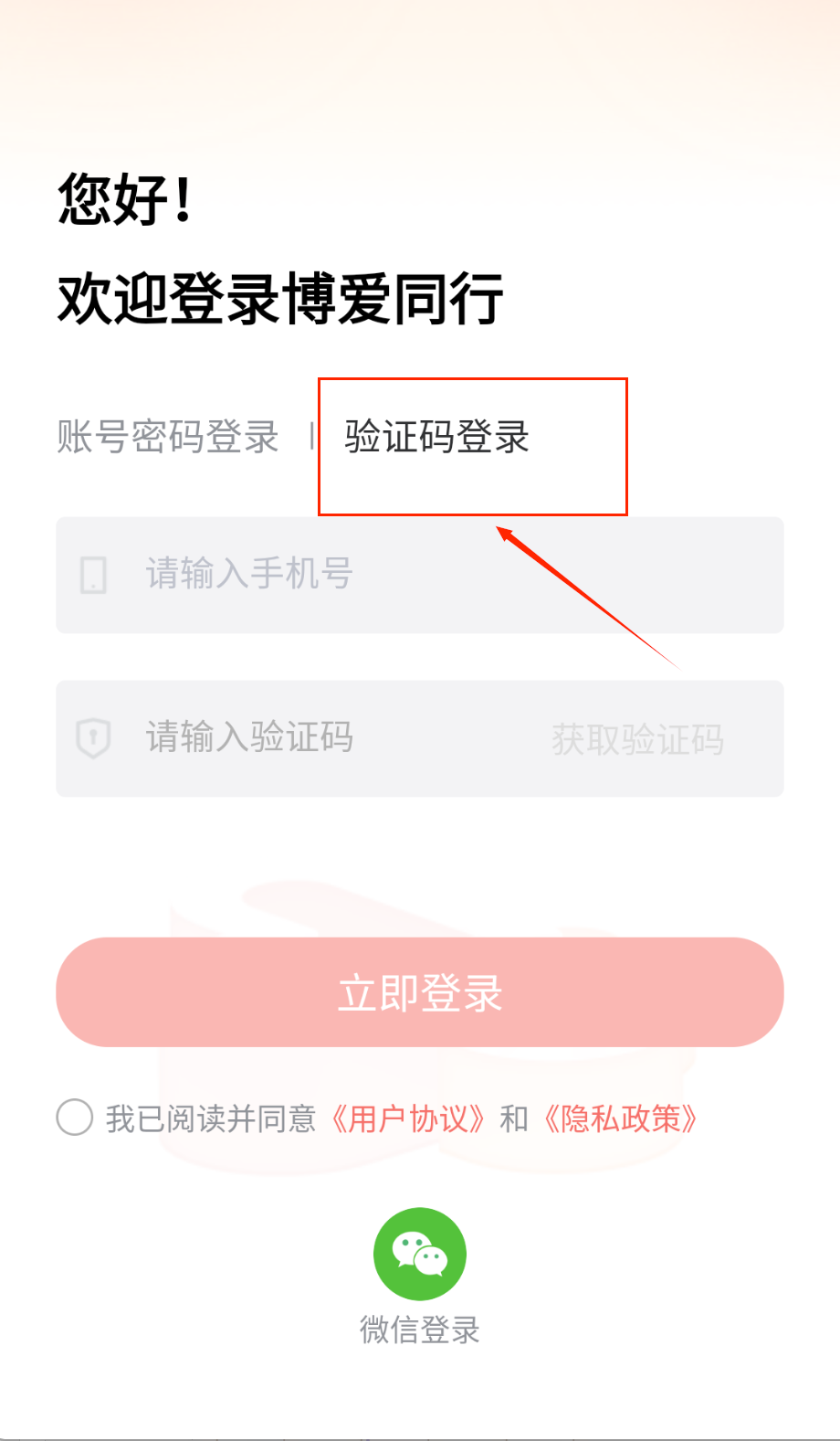 2、选验证码登录的话要先输入手机号,点右边"获取验证码"按钮,收到短信后填入验证码框里,最后点粉色登录按钮就能进入啦。