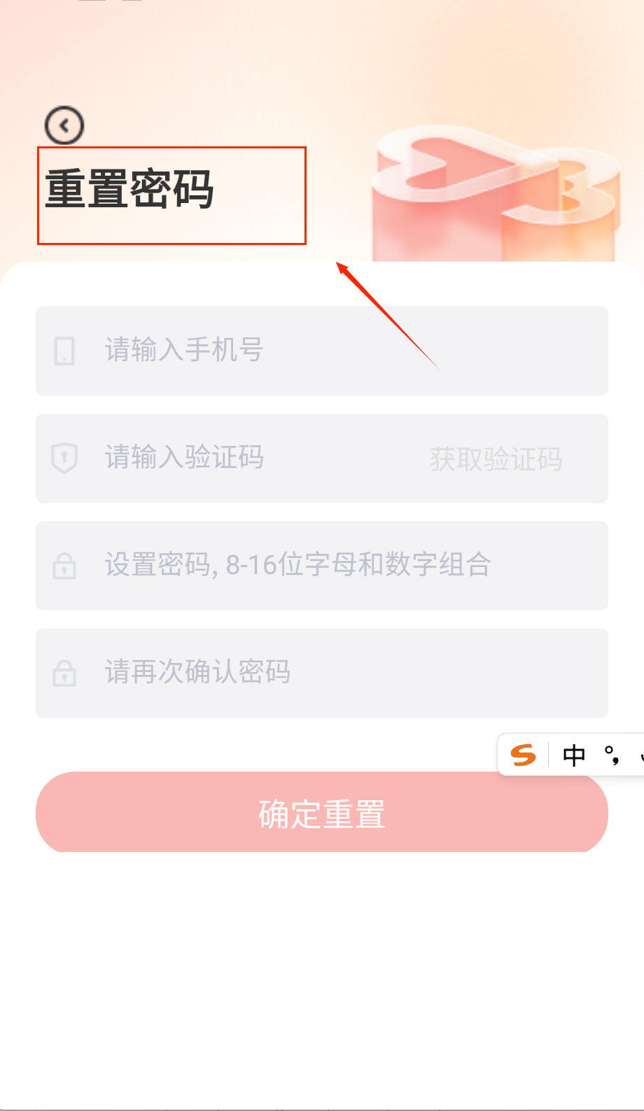 4、忘记密码时需要先验证手机号,设置8-16位的新密码要包含字母和数字,确认无误后点确定重置就能用新密码登录了。