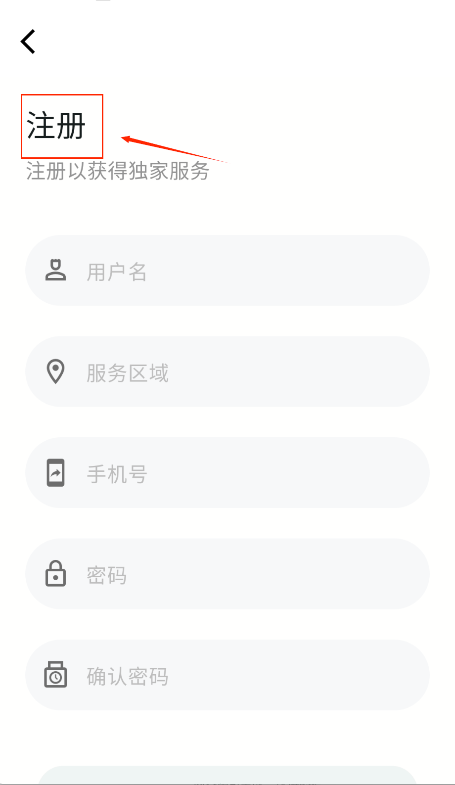 2、注册时要先想个好记的用户名,再选择所在服务区域,填写能接收验证码的手机号,设置并确认密码就可以完成注册啦。