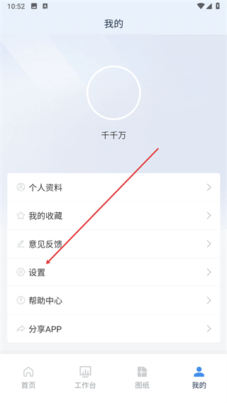 1、打开建管数字app,找到设置选项并点击。