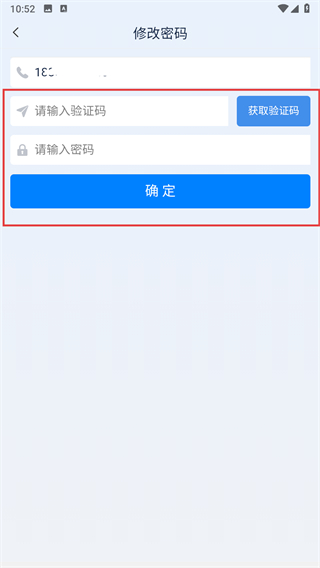 4、获取验证码并输入,并输入密码点击确定。