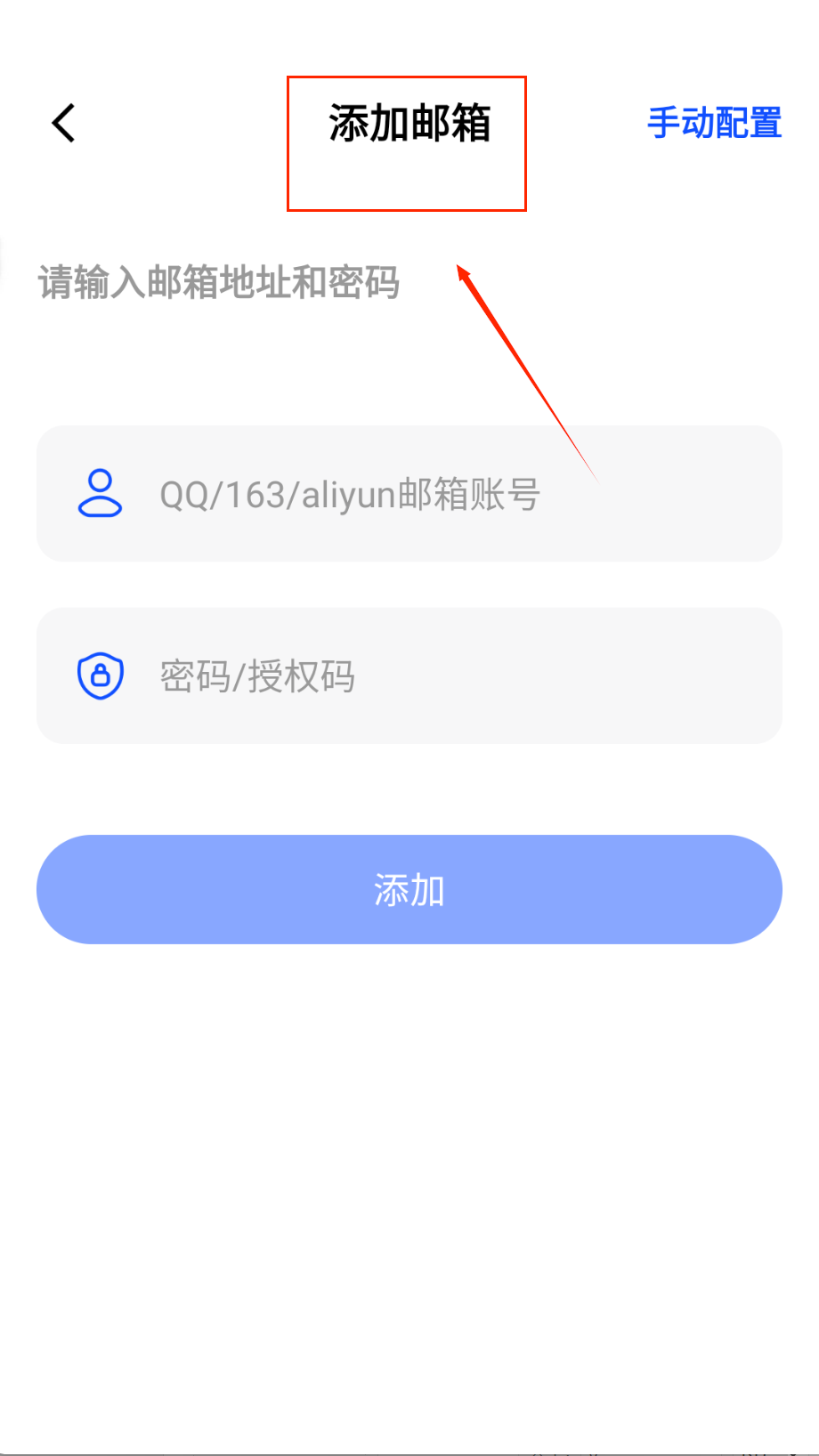 1、安装完成后打开APP,点击"添加账号"按钮,支持QQ、163、Gmail等主流邮箱,输入账号密码即可完成绑定呀。