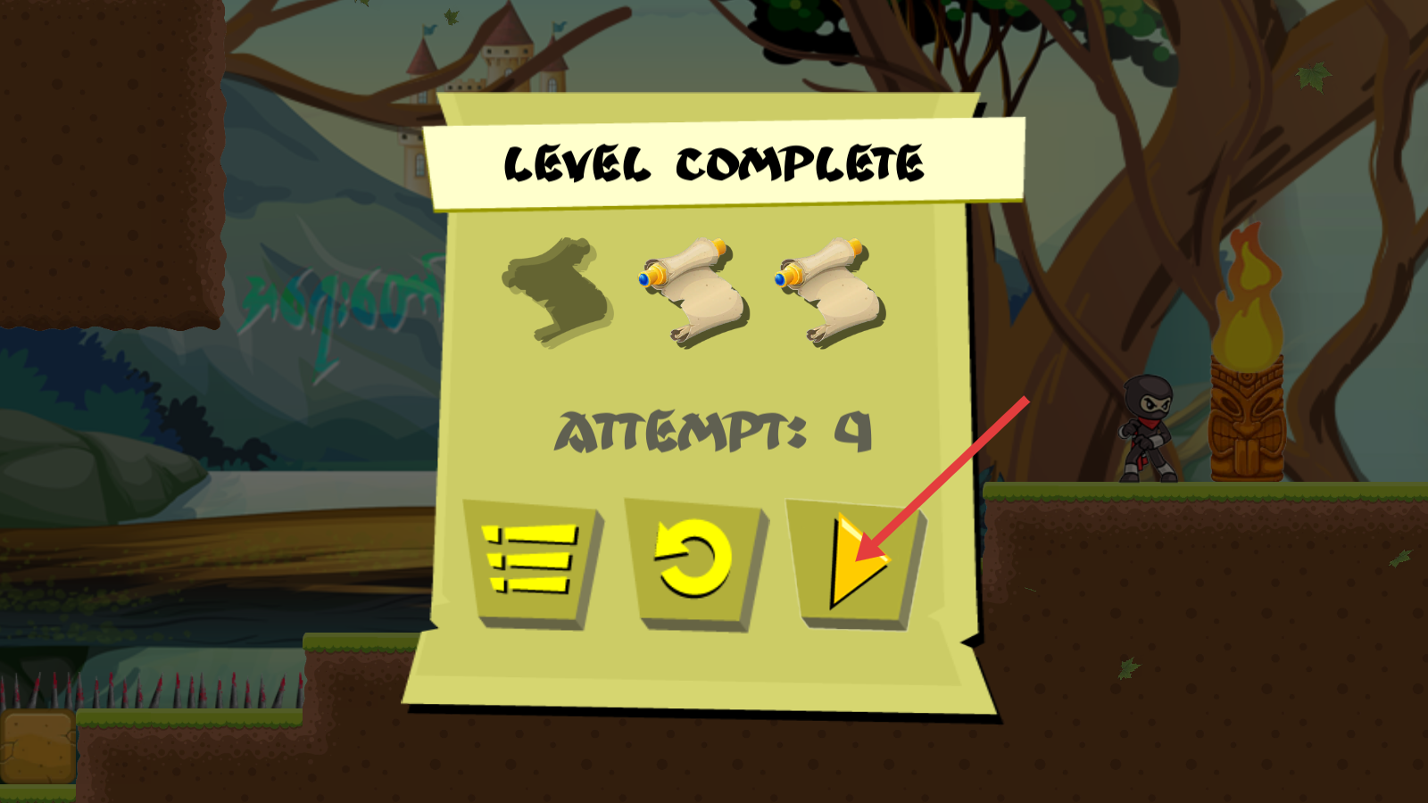 4、通关后点击【黄色-箭头】按钮,领取【卷轴-奖励】,进入下一关继续挑战,积累更多通关次数。