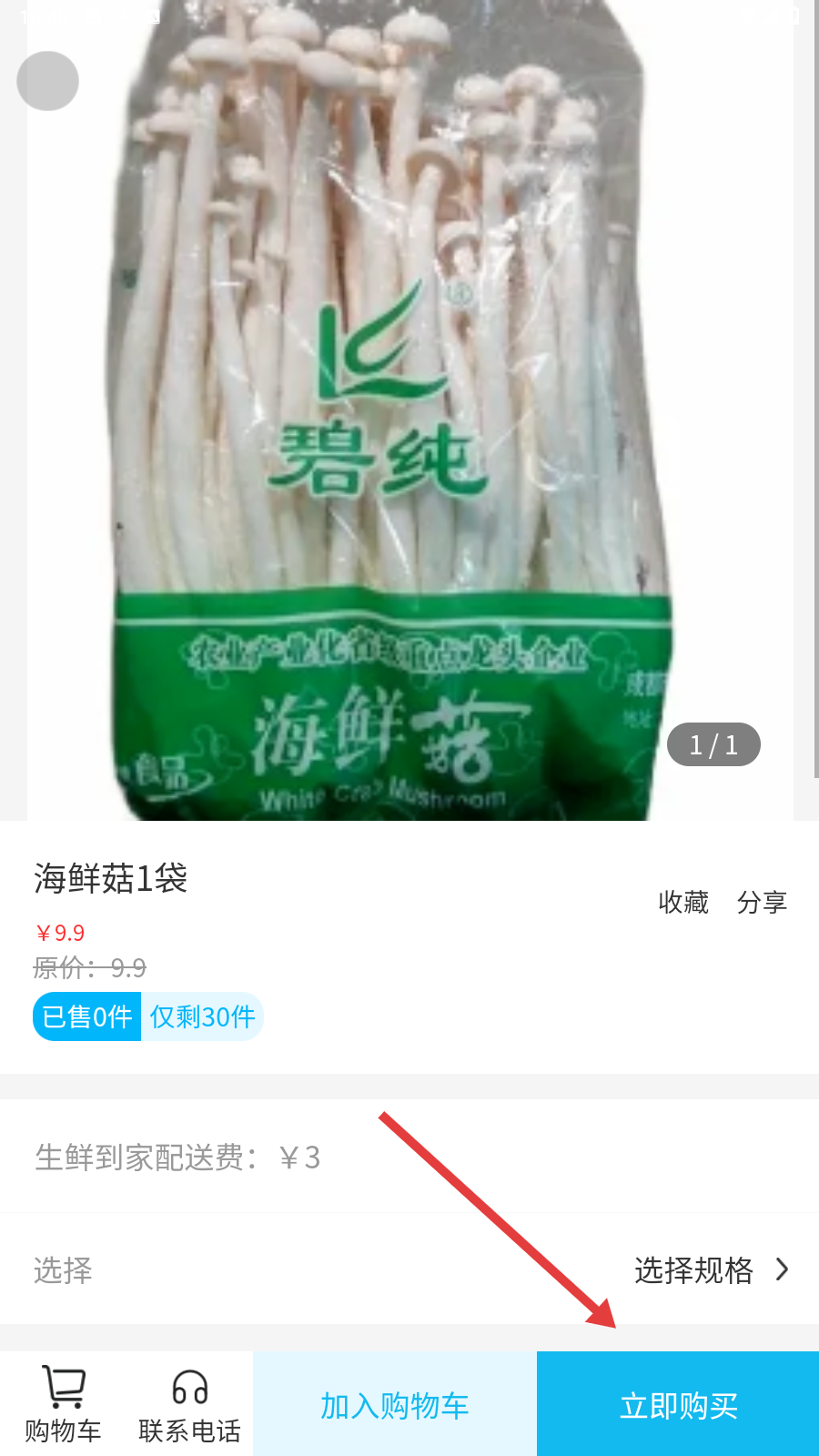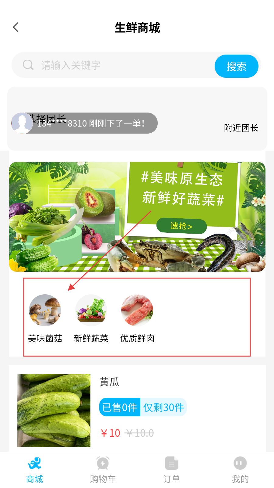2、在【生鲜商城】页面,点击要购买的商品分类。