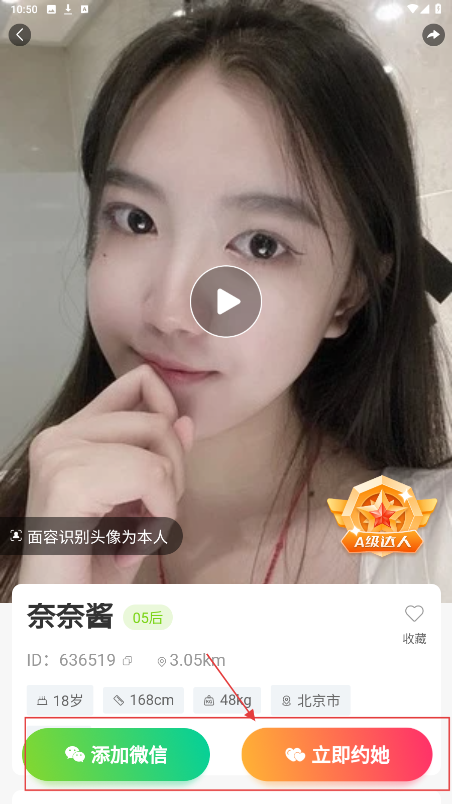 2、进入达人个人资料页面,点击【立即约她】。