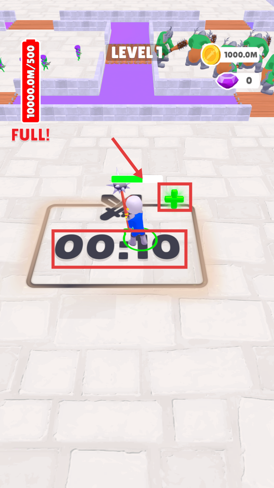 3、战斗中找到带时间显示的区域,站在其上可获得【+】增益效果,利用这段时间恢复或强化自身。