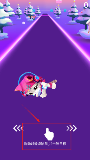 2、出现“拖动以躲避陷阱,并击碎目标”提示时,按住并左右滑动屏幕操控角色前进。