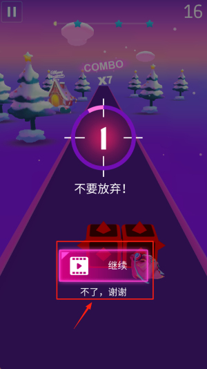 4、点击“继续”再玩一次或选“不了,谢谢”返回主菜单。