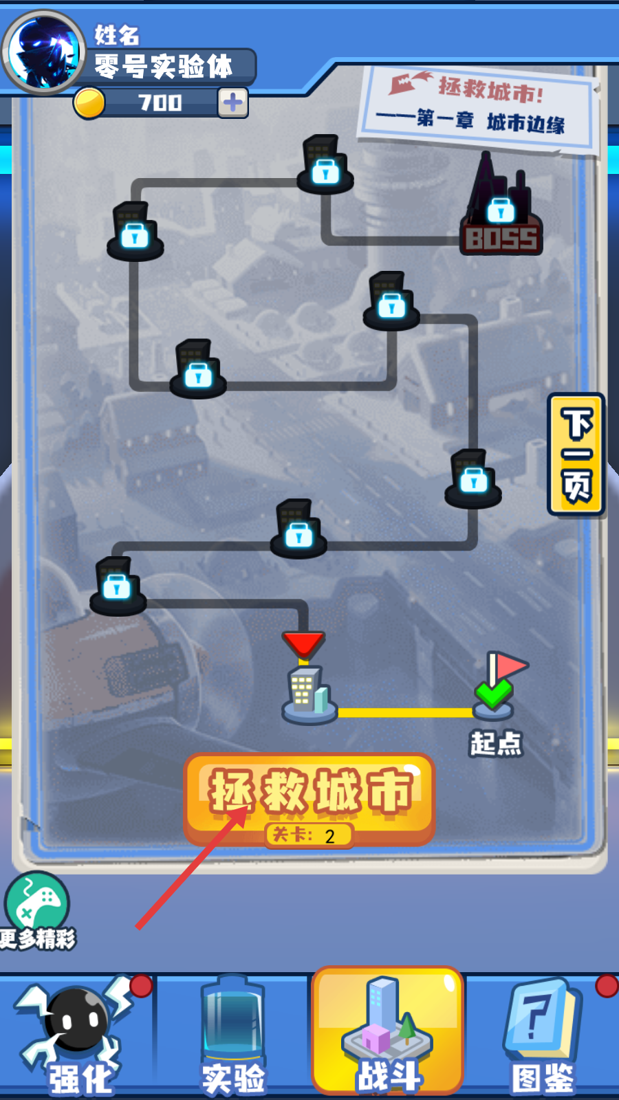 1、点击【拯救城市-关卡2】开启战斗,该关卡属于【第一章-城市边缘】,是推进剧情的关键节点。