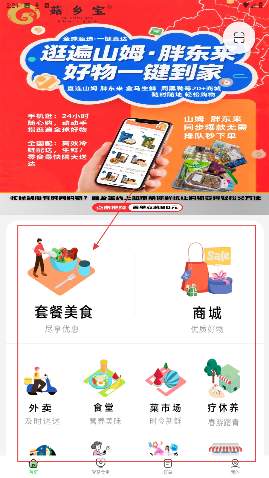 1、首页点【套餐美食】,进入美食分类页选心仪类别。