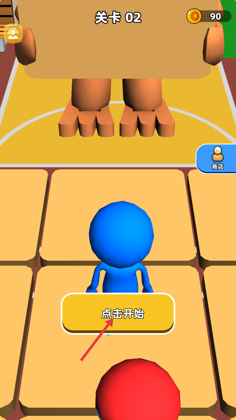 1、进入【关卡02】,点击【黄色-点击开始】按钮开启挑战,当前持有【金币-90】可用于后续环节。