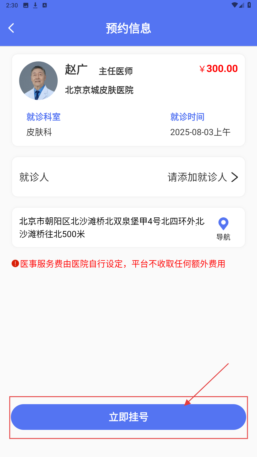 4、填就诊人等信息,确认后点【立即挂号】完成操作。