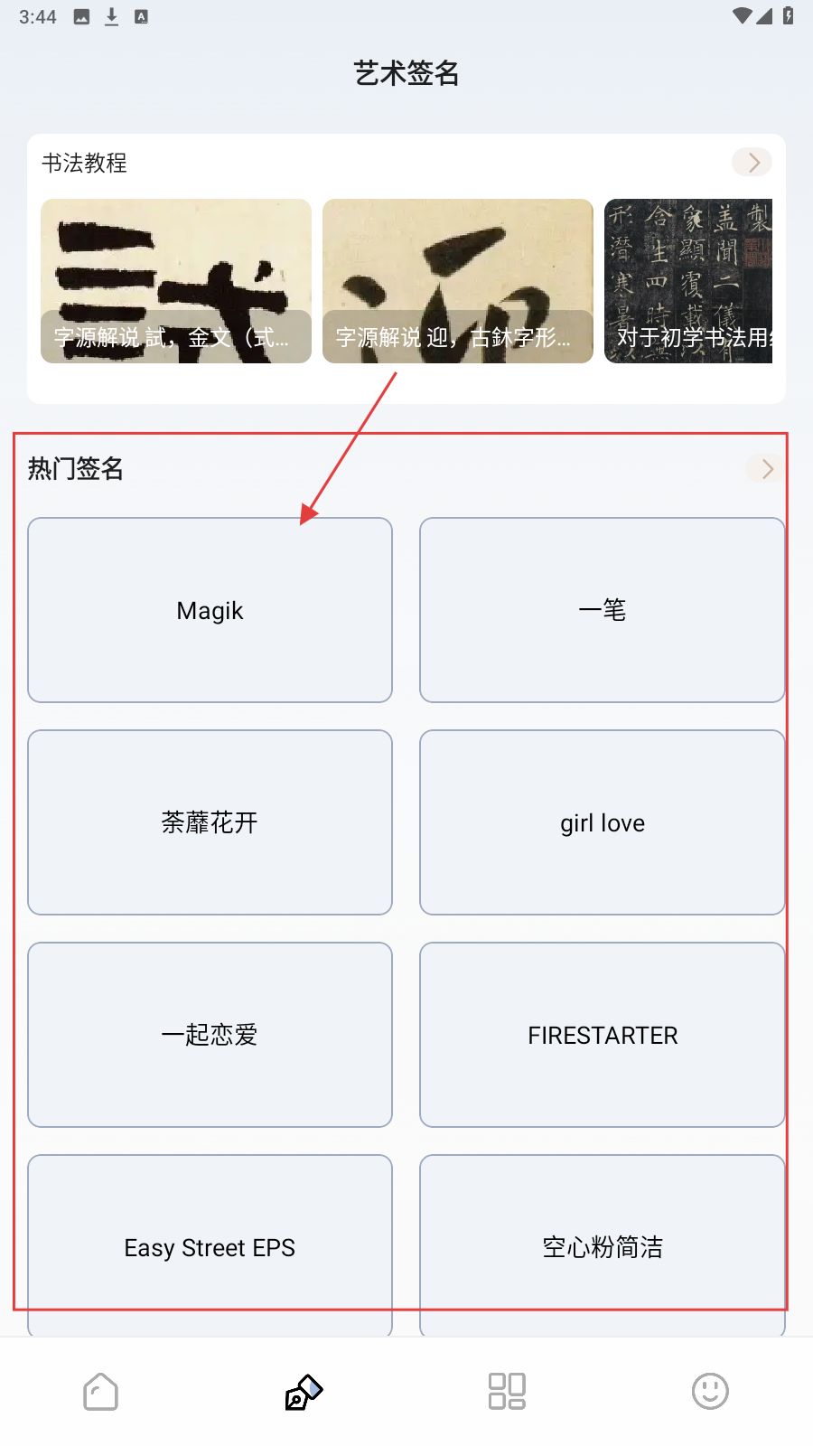 1、进入【艺术签名】页,选热门签名模板,如【Magik】,开启制作。