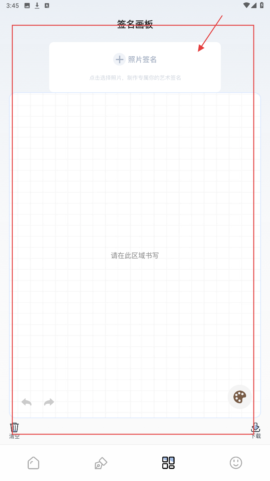 4、进入签名画板,可手写签名或点【照片签名】,上传照片制作独特签名。