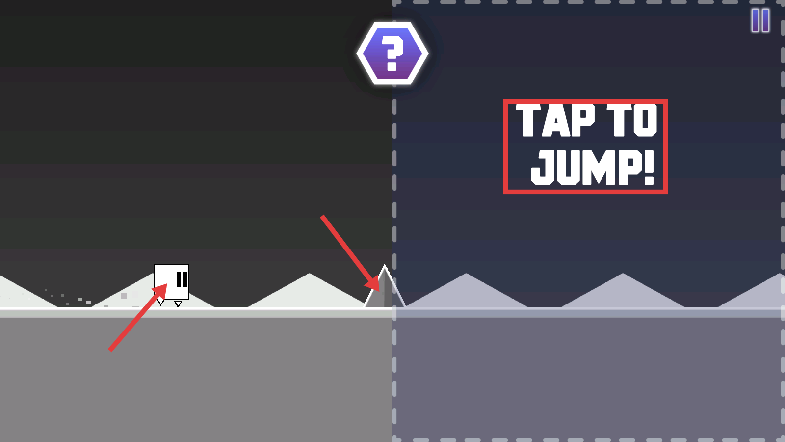 1、点击【TAP-TO-JUMP】操控角色跳跃,跨越前方三角障碍物,顺利推进游戏进程。
