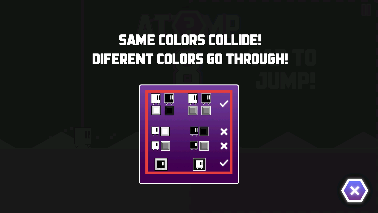 3、遇到同色障碍物时,利用【SAME-COLORS-COLLIDE】机制,让角色与之碰撞互动,完成关卡要求。