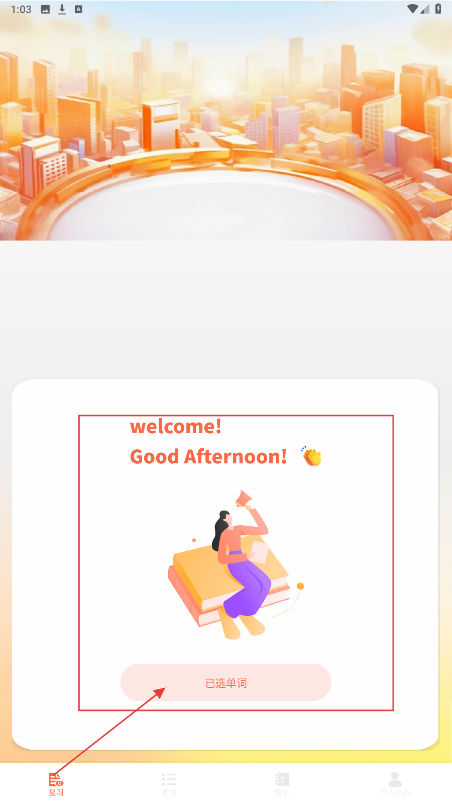 3、切换复习页,点【已选单词】,开始单词记忆练习。