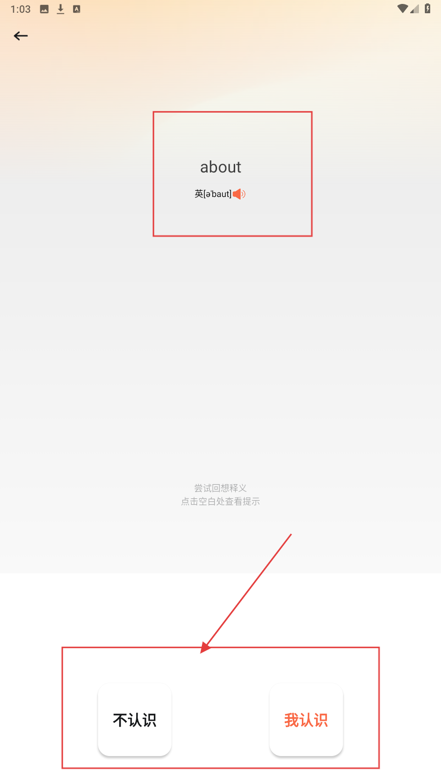 4、在单词复习页,听发音,判断是否认识,标记学习状态。