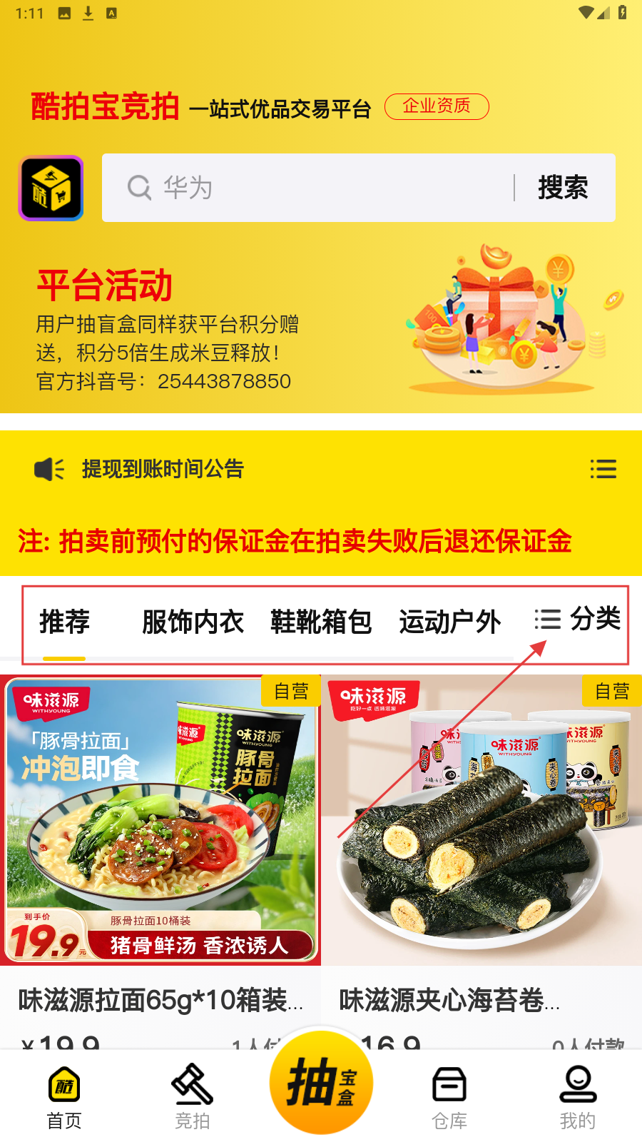 1、进入平台首页,点【分类】,浏览全品类商品分类。