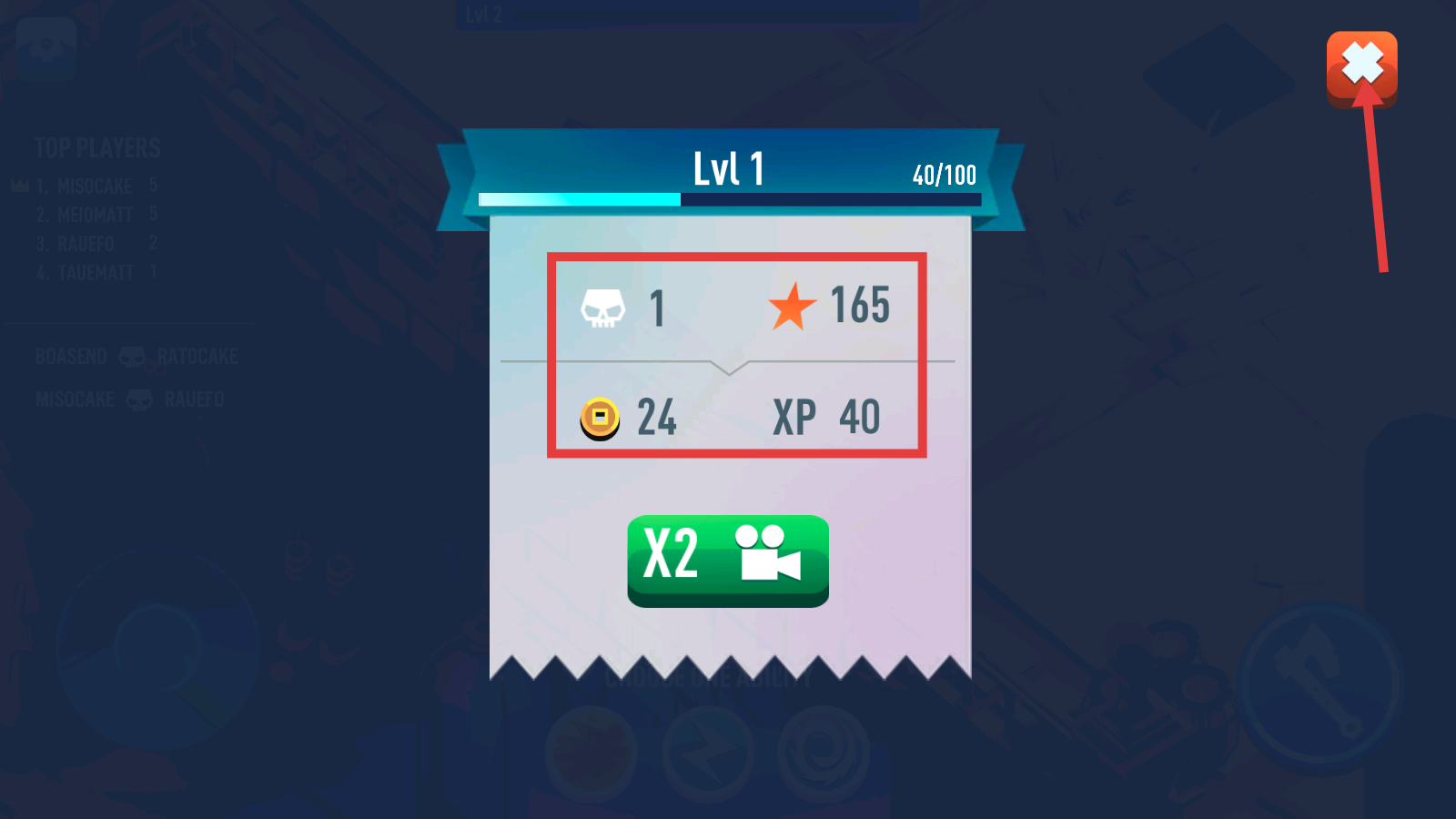 4、结算界面查看【1】击杀、【24】金币等奖励,积累资源用于角色升级与技能强化。