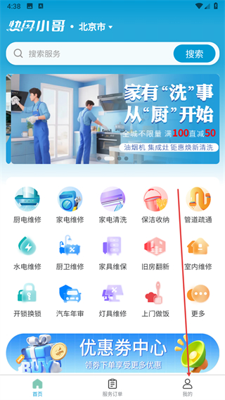 1、首页选【厨电维修】,进入项目列表,看集成灶、热水器等维修项。