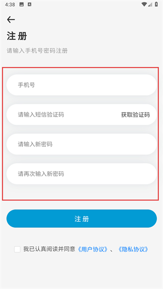 4、填写手机号验证码及密码,勾选协议后点击注册。