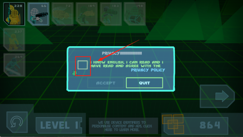 2、接受隐私政策:在“PRIVACY POLICY”界面,直接点击“ACCEPT”按钮,同意隐私条款并进入游戏。