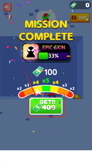 1、领取通关奖励:在“MISSION COMPLETE”界面点击“GET!!”领取7400金币与史诗皮肤奖励。