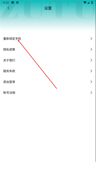 3、在设置页面选择重新绑定手机,跳转至绑定页面。